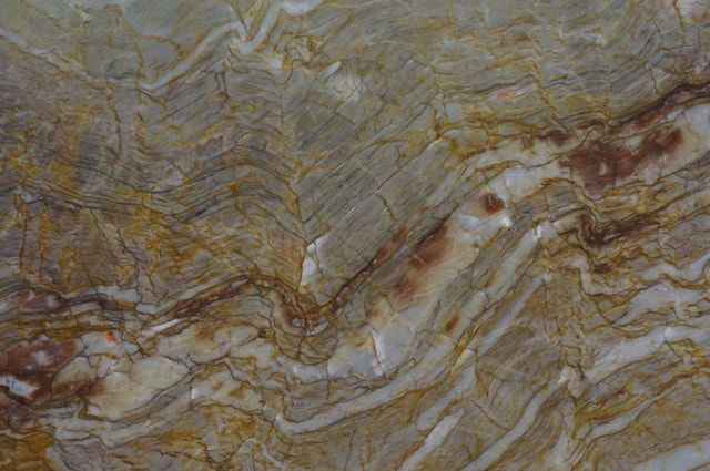 Because of the way the stone is formed–from sand that is heated to form a solid slab–the base color of quartzite is typically white or cream, though it can also look more beige. Aside from the greys and browns, you can also find hues of green, blue, and even red. These colors are imparted from the minerals in the earth where the stone is formed. Nature’s paintbrush can make slabs that are stunning and vivid in color.